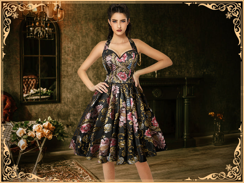 Steampunk Gothic Irregular Floral Print High Low Party Skirt
