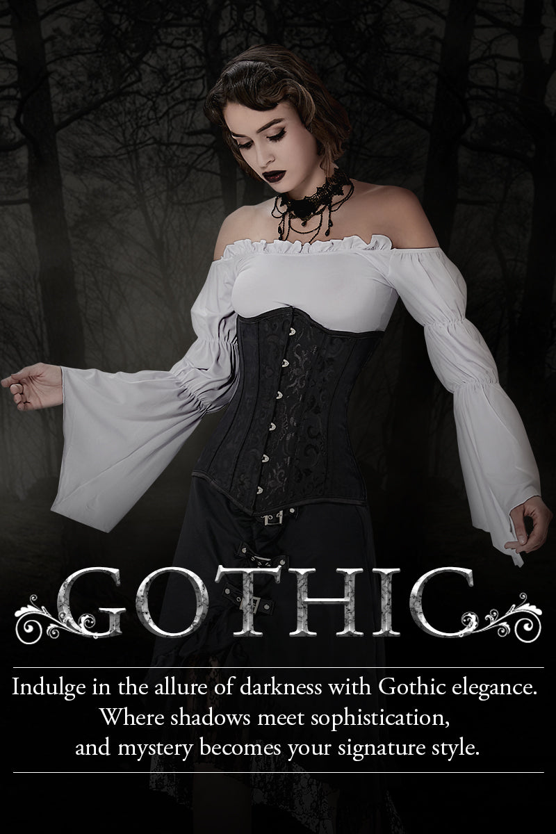 Steampunk Gothic Elegant Off Shoulder Jacquard Overbust Corset Top