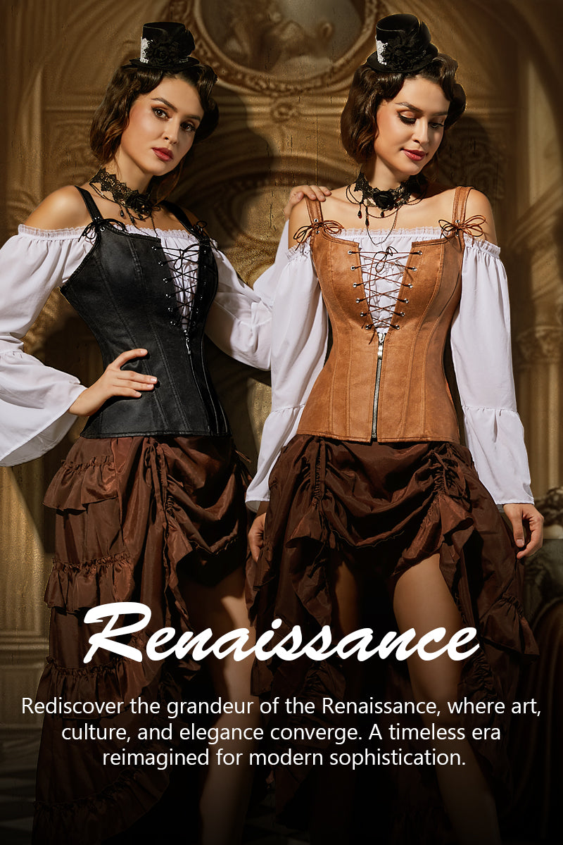 Renaissance Lace Up Vintage Boned Bustier Corset with Garters